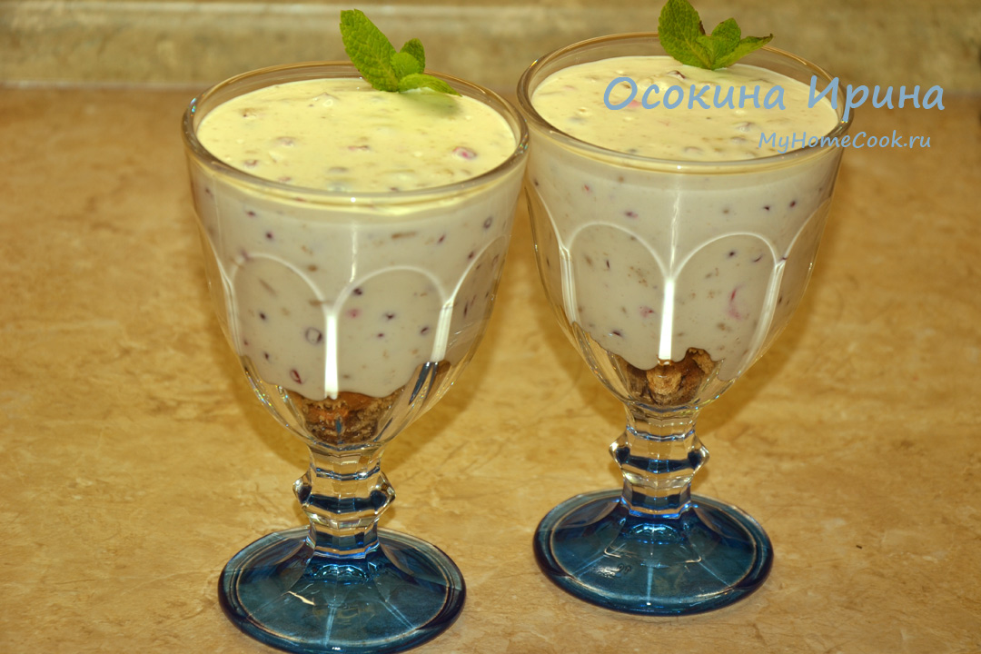Этот десерт при желании может и завтрак заменить, и плотный перекус. В чашу блендера сложила 200 г сыра "Маскарпоне" и 2 ст.л. сгущенного молока и пробила до однородности, затем добавила 100 г размороженной брусники, горсть кедровых орешков и промешала. Затем разломала на кусочки 2 овсяных печенья, на дно сервировочных бокалов сложила крупных кусочки, а мелкие добавила в блендер к остальным продуктам, промешала, разложила по бокалам поверх печенья и убрала в холодильник на пару часов. Очень вкусный (правда весьма калорийный, но иногда ведь можно) зимний десерт великолепно "зашёл" с кофейком)